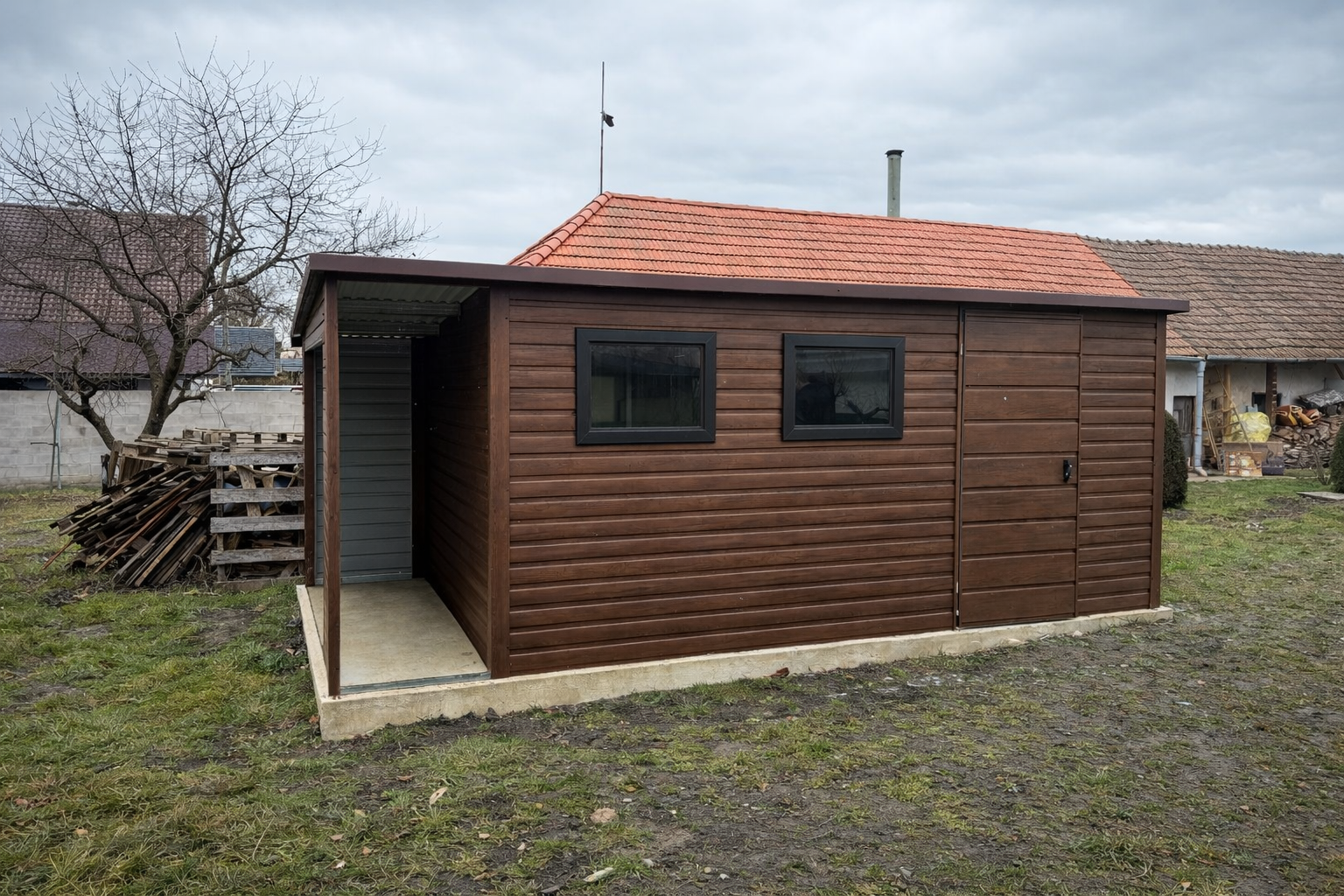 Optymalna przestrzeń: Wymiar 5×3 + 1×3 m zapewnia miejsce na regały, opony, rowery czy narzędzia ogrodowe.