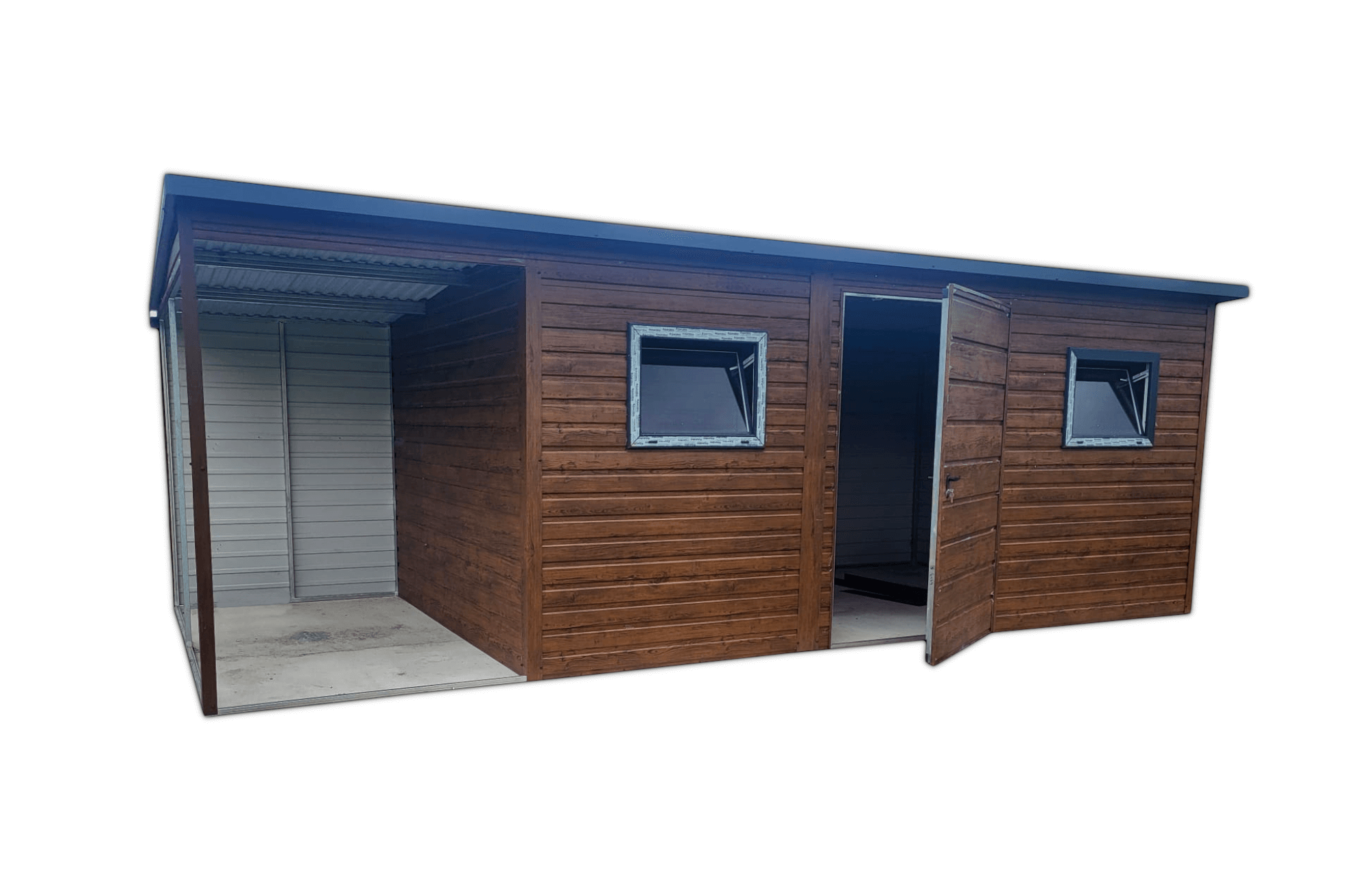 Domek Ogrodowy drewnopodobny 5×3 + 2m wiatka