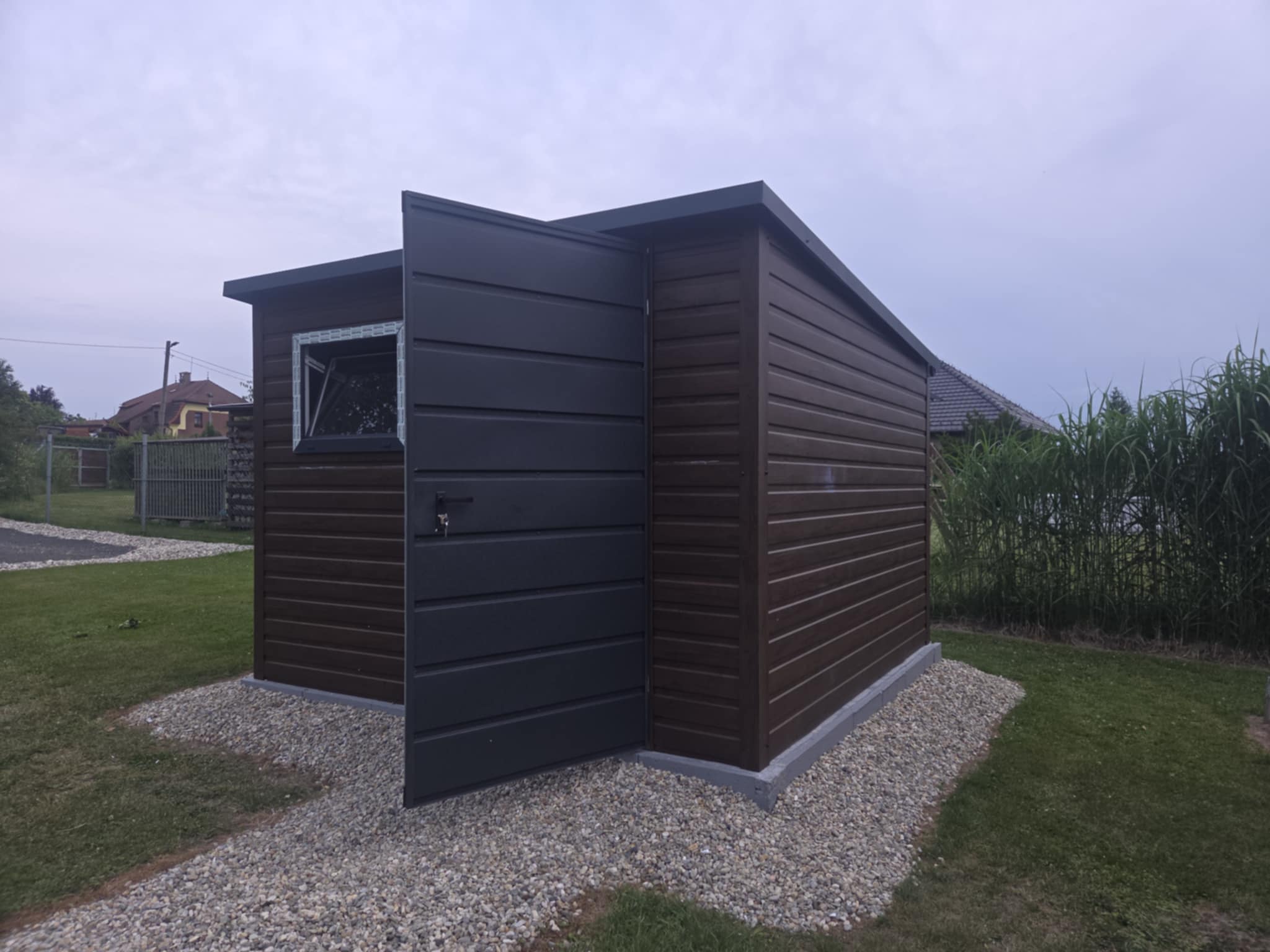 Wyposażony w funkcjonalne drzwi oraz uchylne okno PCV, zapewnia nie tylko bezpieczeństwo, ale i dostęp naturalnego światła do wnętrza. Idealne rozwiązanie na działkę, do ogrodu czy przydomowego warsztatu.