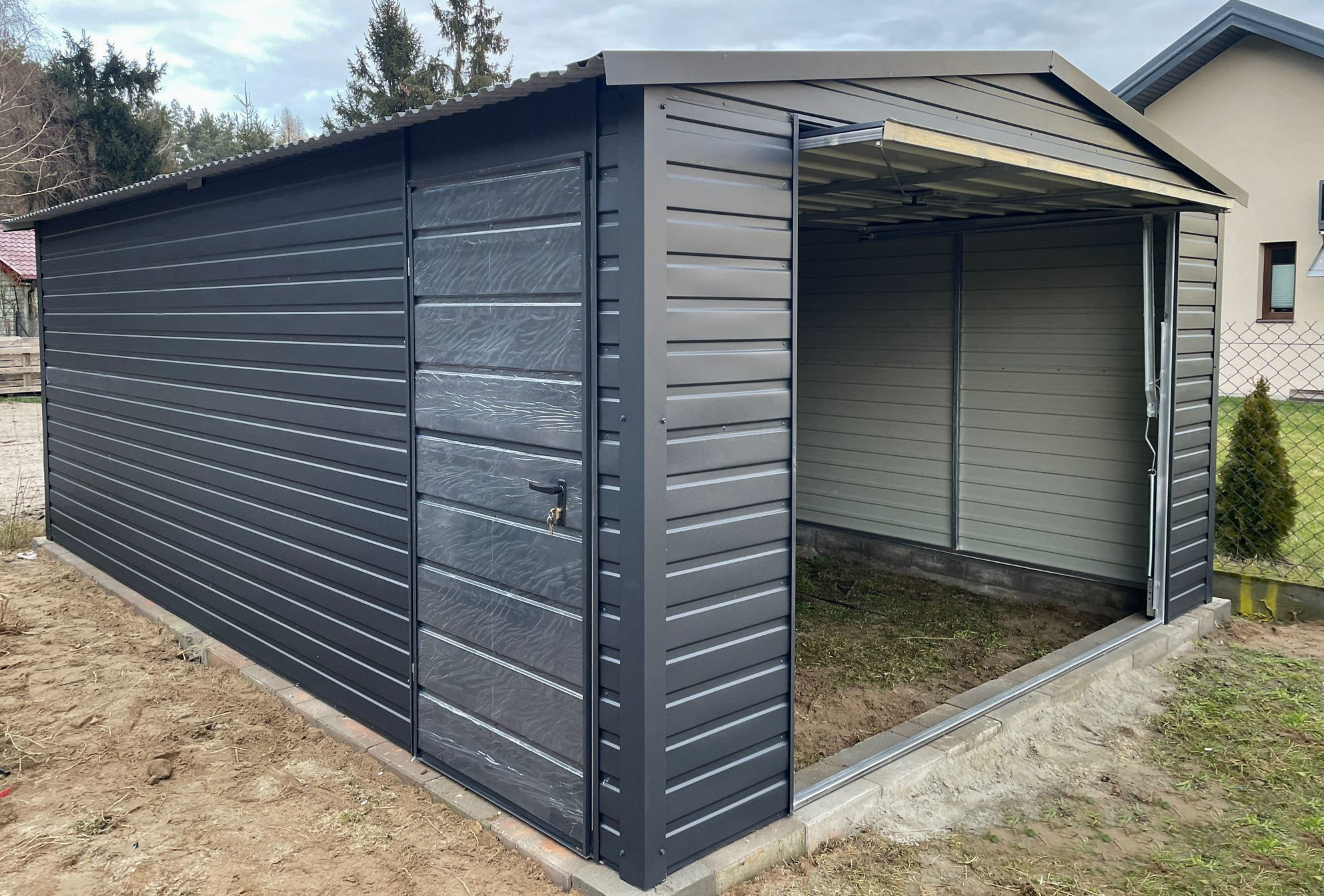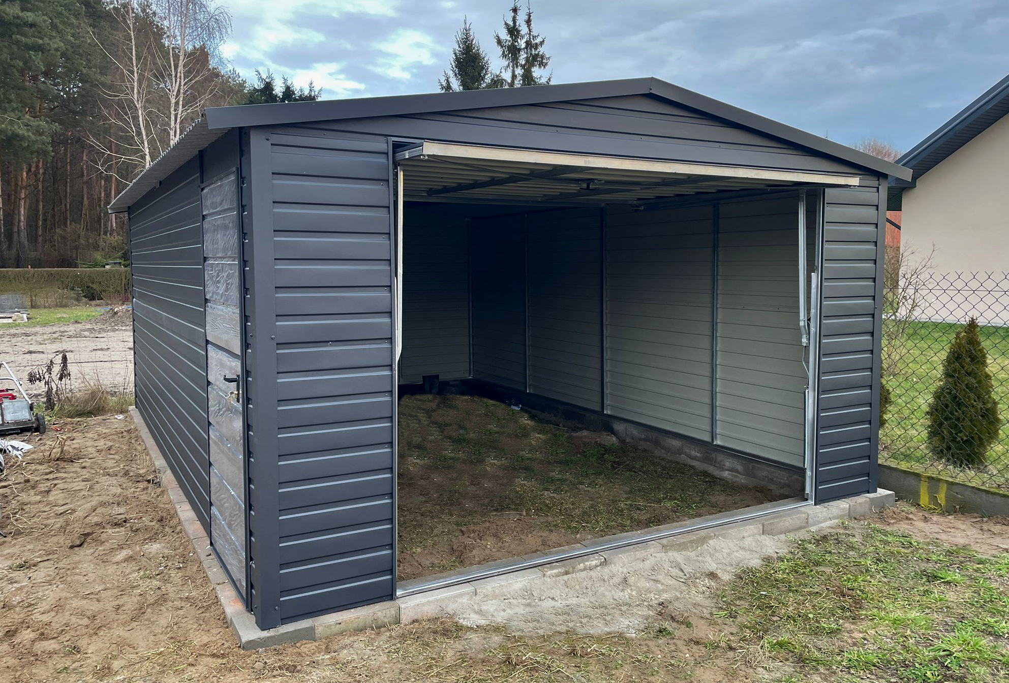 Garaż Blaszany 3.5×5 dwuspadowy ciemny grafit MAT