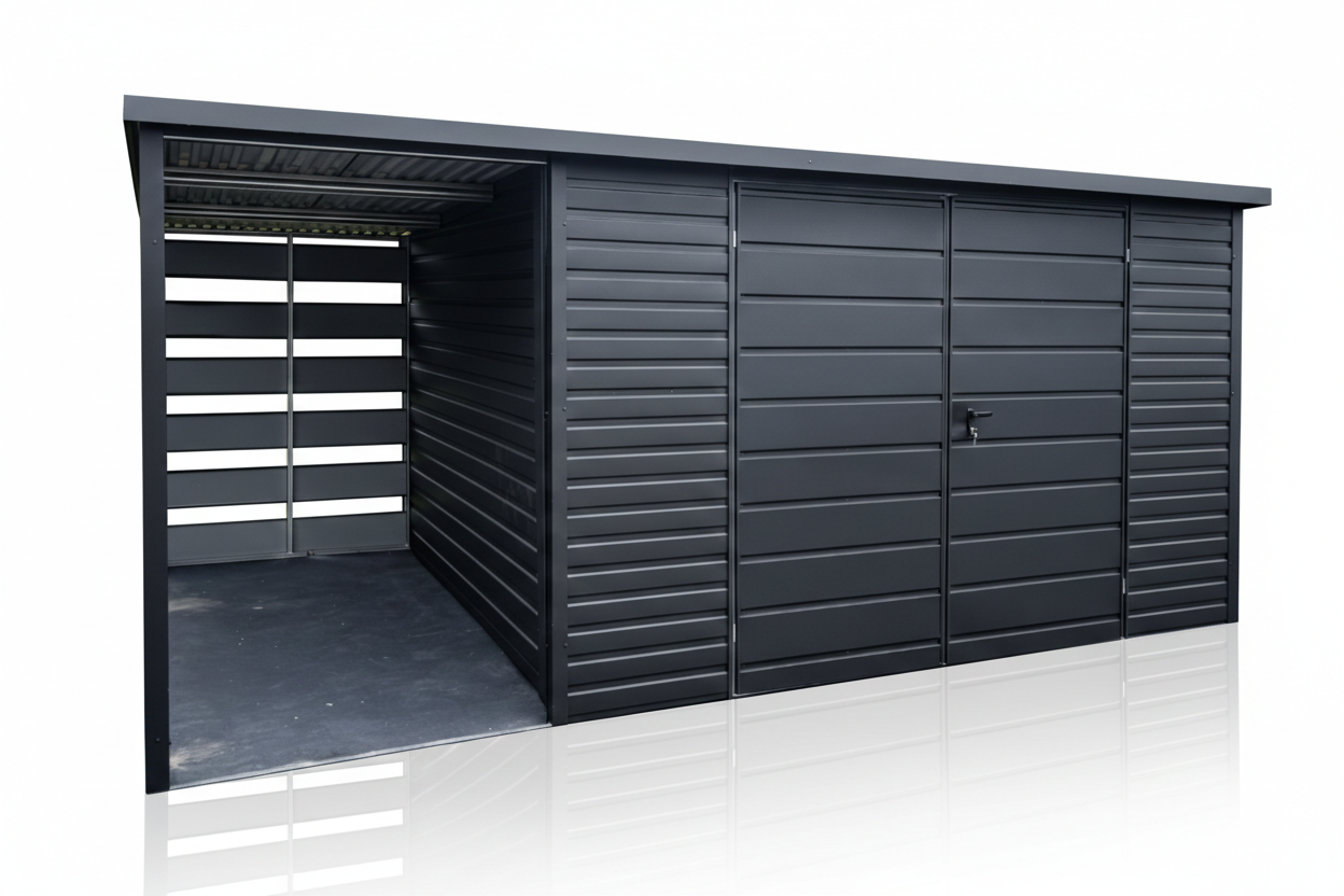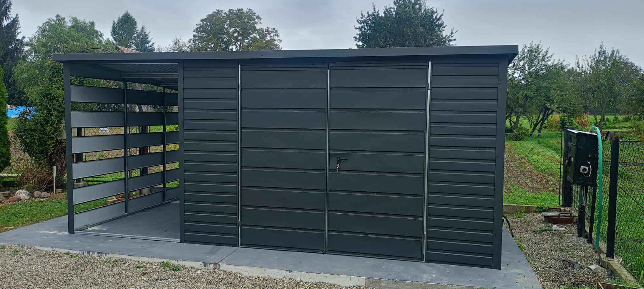 Garaż Blaszany 6×4 z wiatą panelową Ciemny Grafit MAT PREMIUM