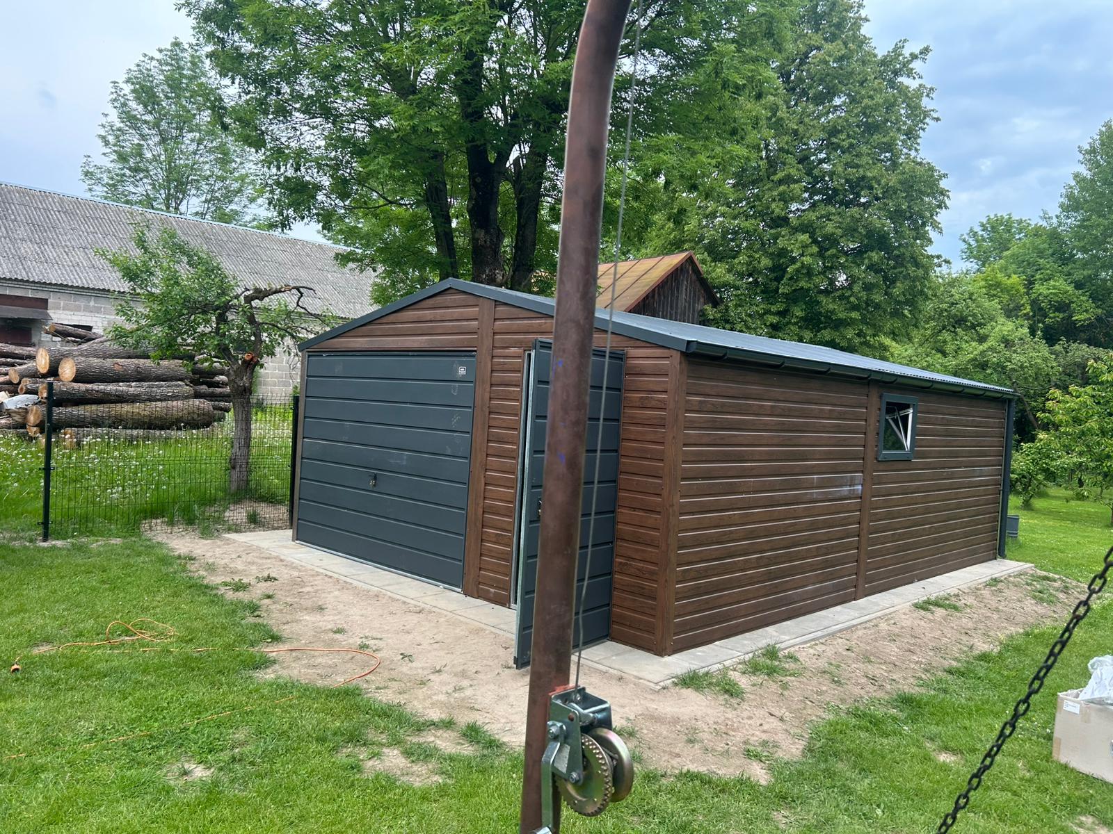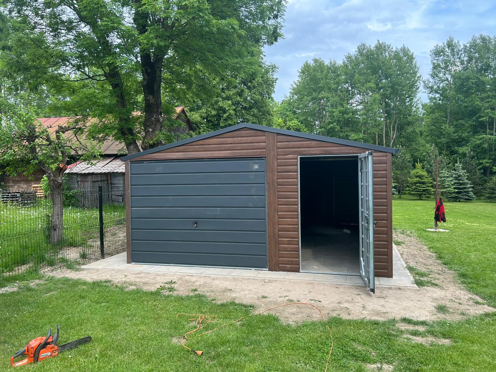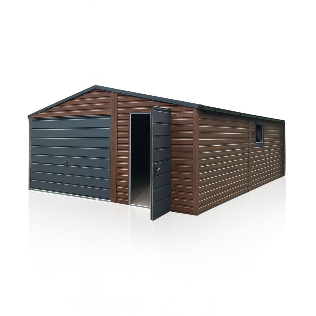 Garaż Blaszany dwuspadowy 5×7 Ciemny Orzech PREMIUM