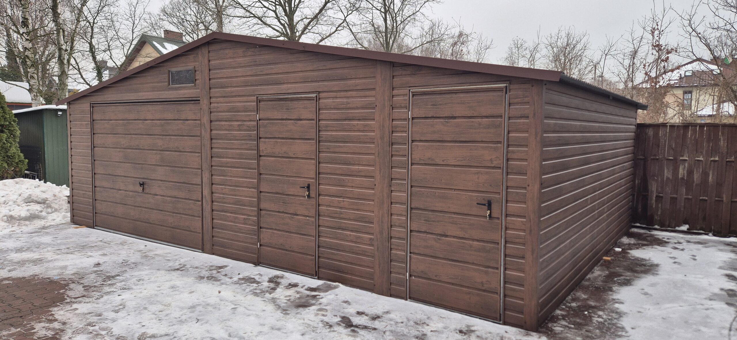 Garaż Blaszany dwuspadowy 7×6 Ciemny Orzech PREMIUM