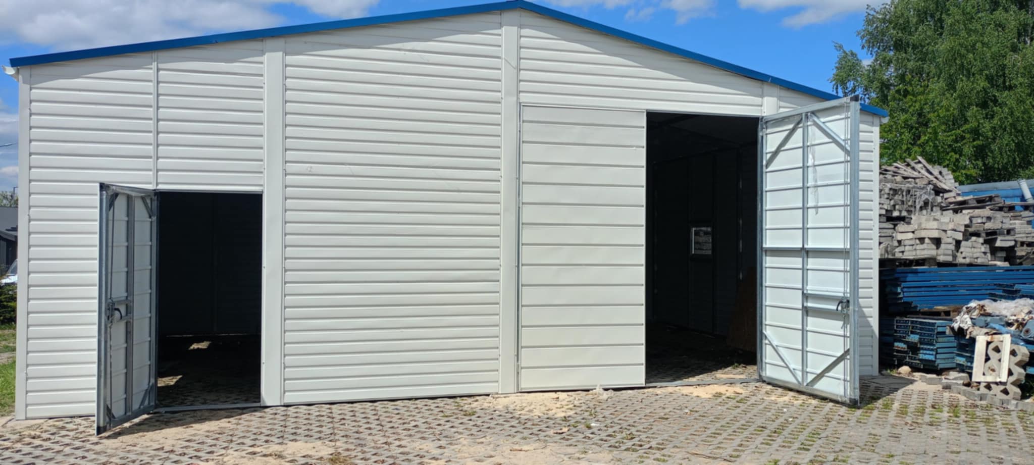 Garaż blaszany/Hala dwuspadowy 9x6m Biały RAL